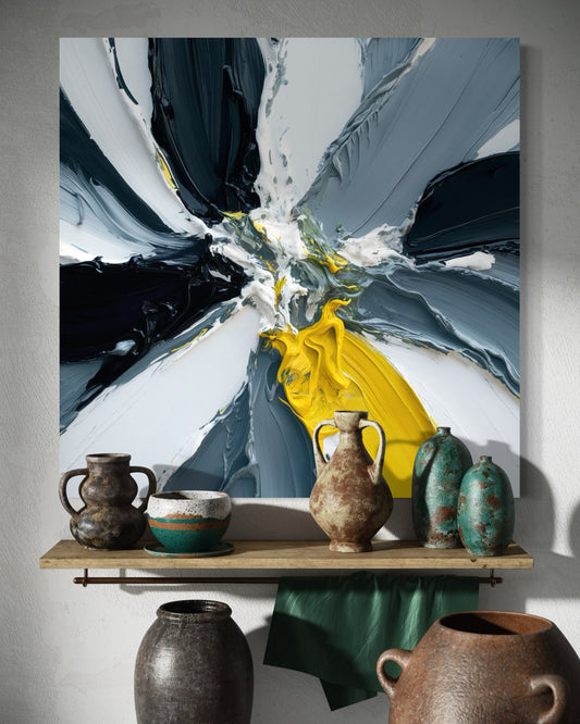 Explosión de Color - Abstracto en Amarillo y Gris
